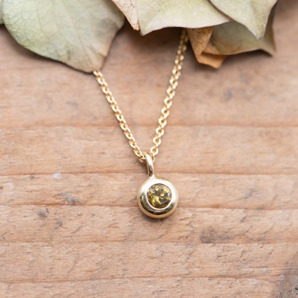 Gelbgoldanhänger mit Mali-Granat560€