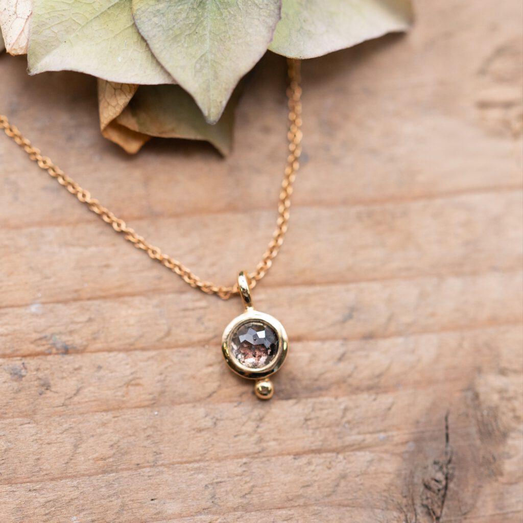 Roségoldanhänger mit einerbraun-rötlichen Diamantrose650€