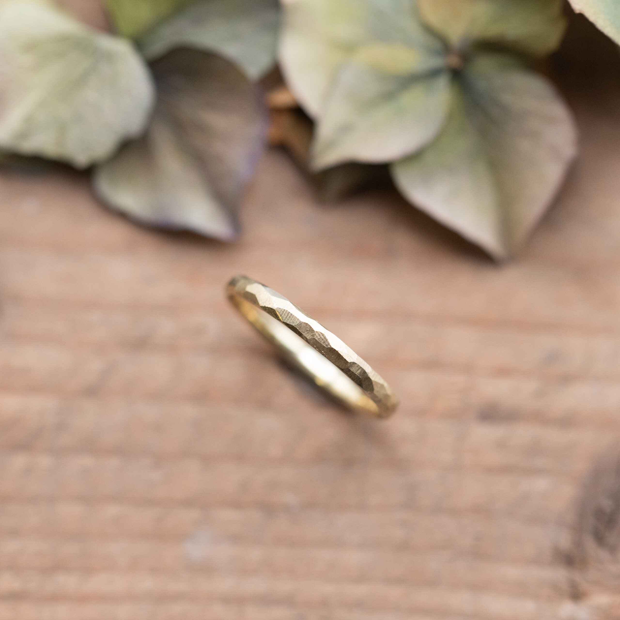 Schlichter Gelbgoldring mit gefeilten Facetten.