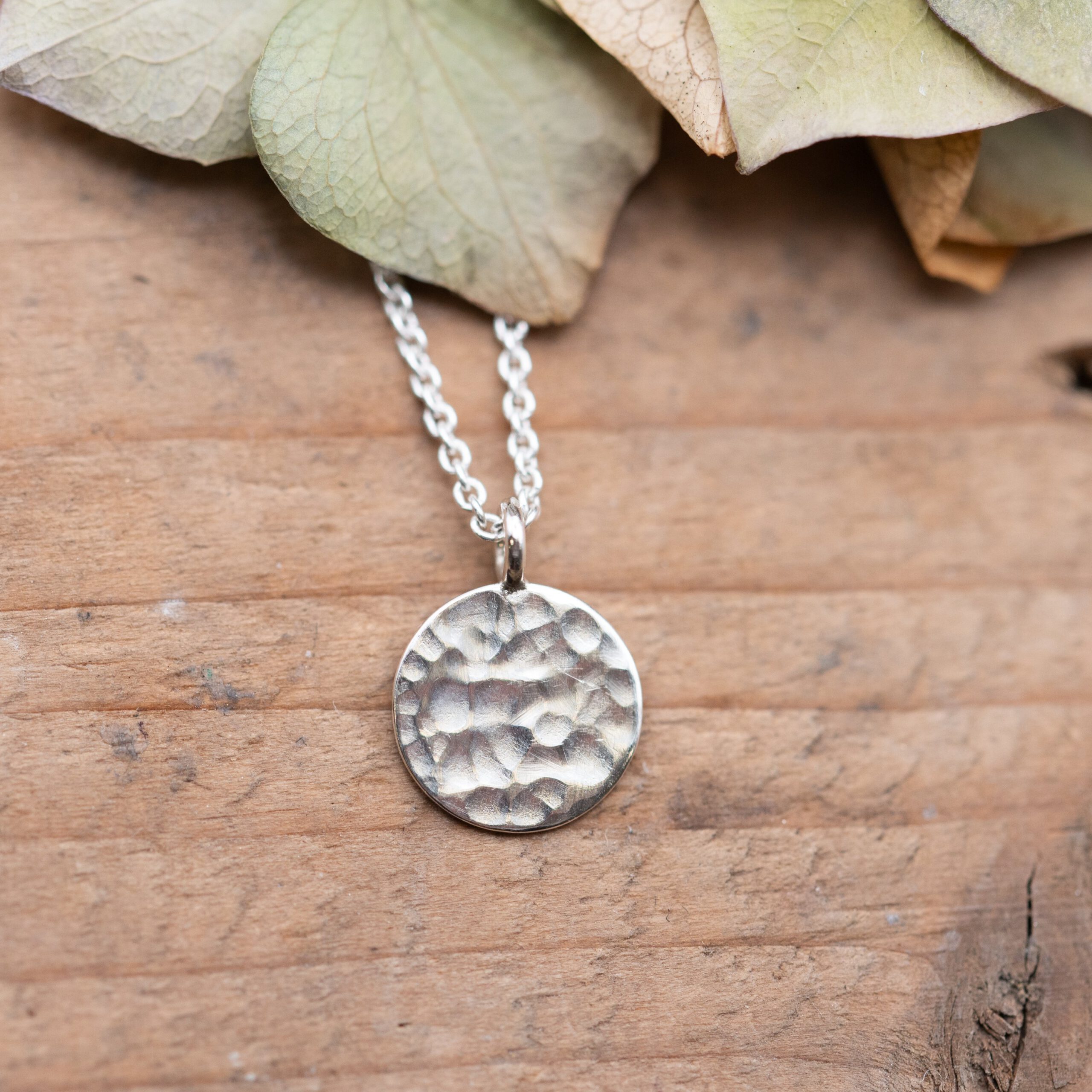 schlichter Silberanhänger in Hammerschlagoptik.