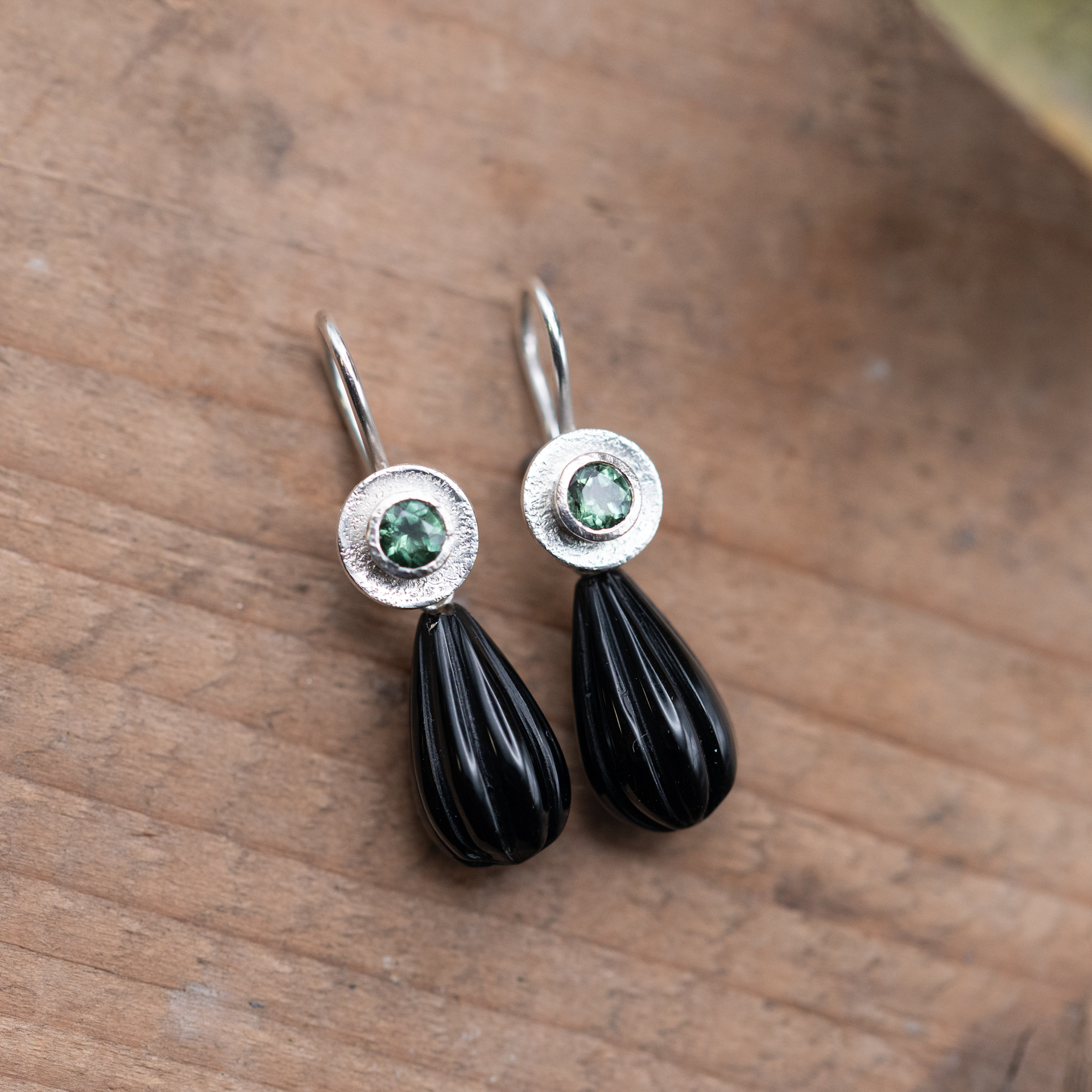 schlichte Silberohrhänger mit Turmalin.