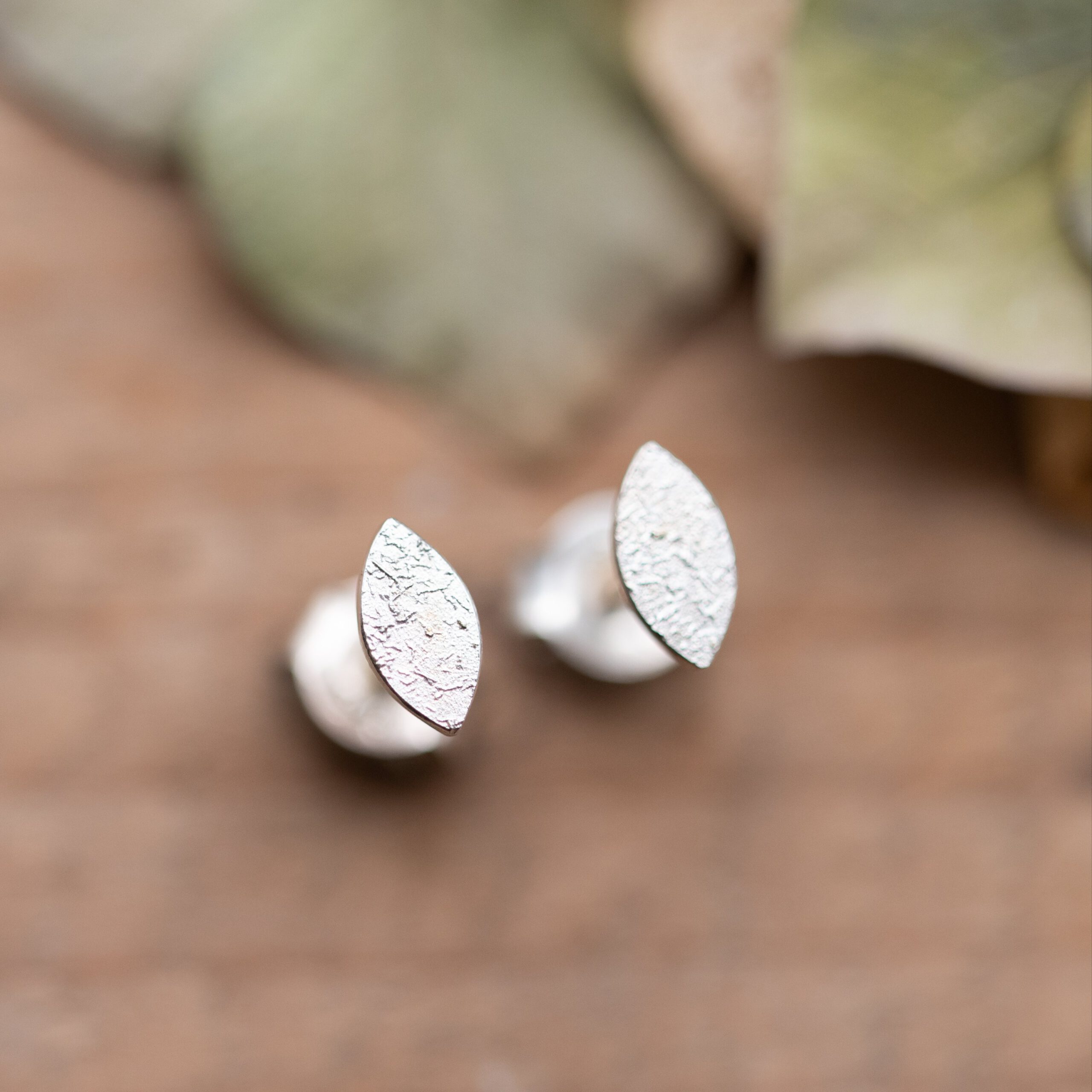 schlichte navettförmige Ohrstecker mit einem feinen Muster.